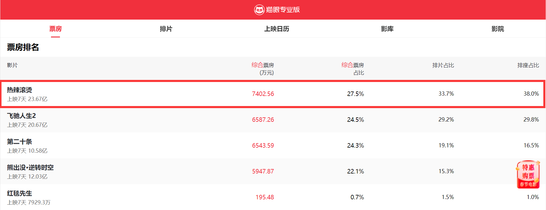 据猫眼专业版数据,电影《热辣滚烫》上映7天,总票房破23亿,暂列春节档第一。同样居高不下的是该片引发的讨论。