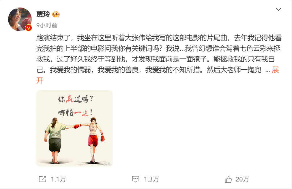 2月16日,@贾玲今日凌晨发文,回应为什么拍《热辣滚烫》登上热一,全文如下: