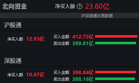 北向资金今日净买入23.60亿元。其中沪股通净买入12.93亿元,深股通净买入10.67亿元。