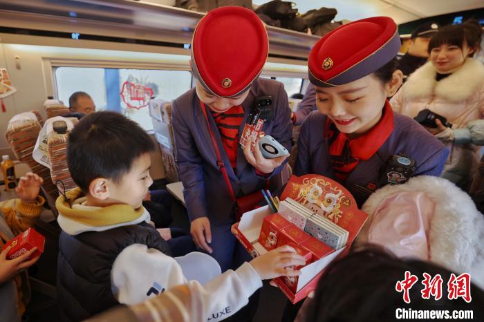 图为乘务员为小朋友带去礼物。刘松霖摄