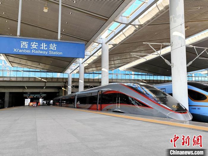图为CR400BF-Z型“复兴号”智能动车组列车停靠在西安北站。刘松霖摄